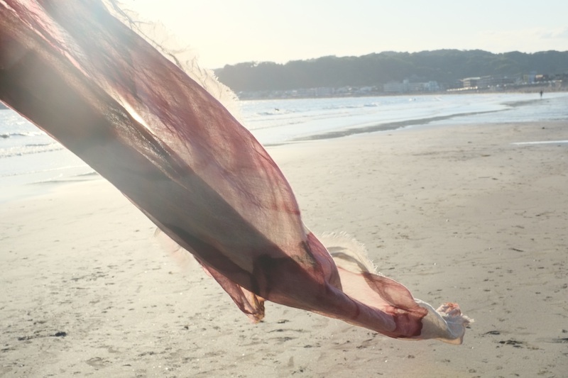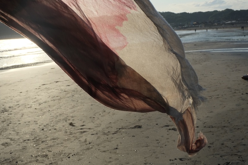 この写真に映っている生地はぎりぎり人間に支えられている状態の生地であり、生地本来の自然な状況下で形態が絶え間なく新しくなり続ける。